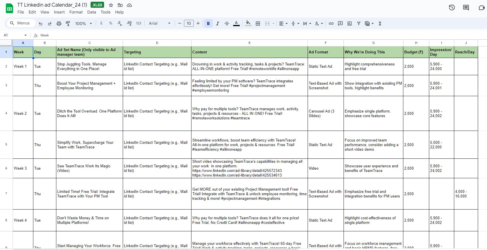 Spearheaded social media marketing efforts at TeamTrace, Ad planning, Competitor analysis, encompassing strategy development, content creation, and execution.
